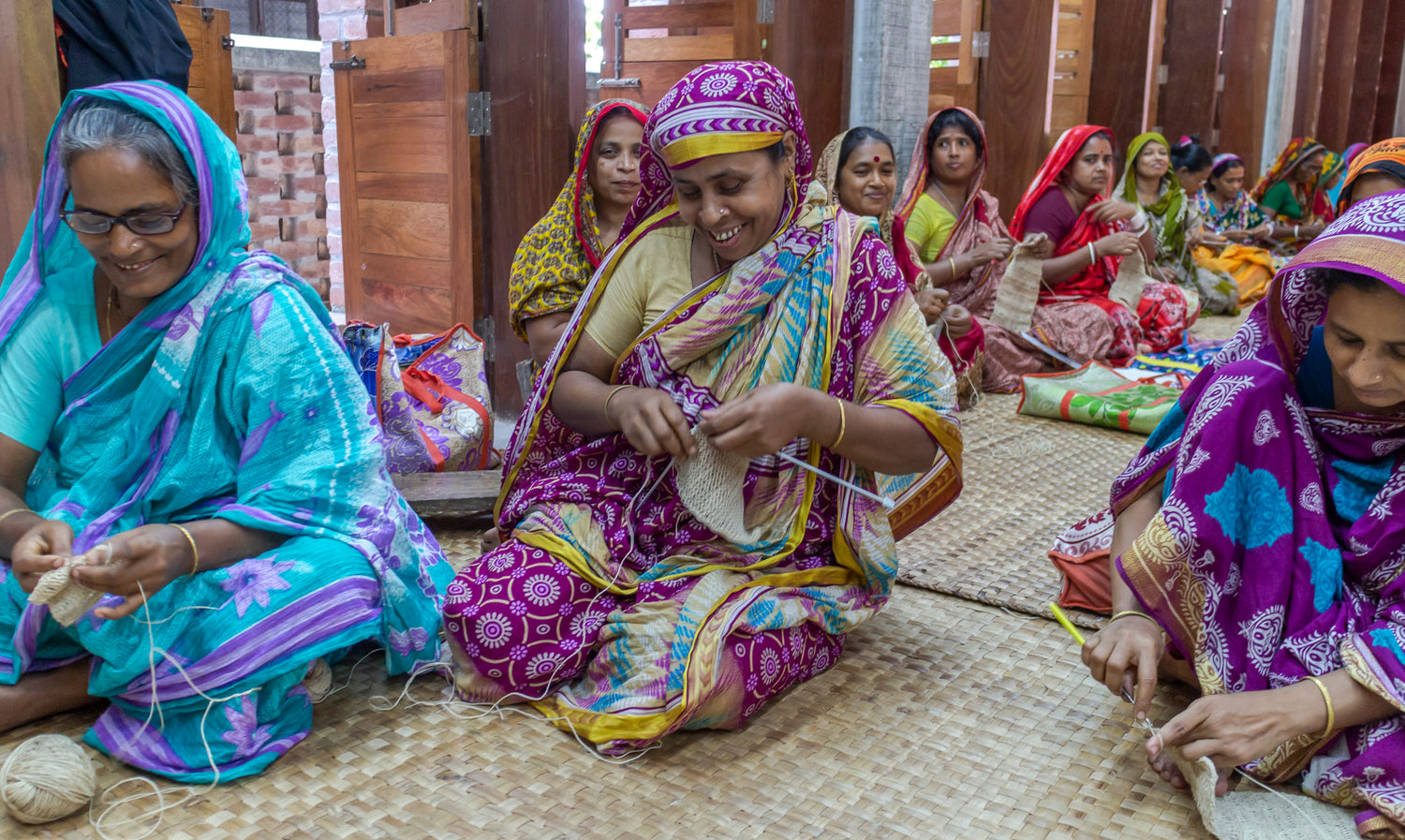 Baghda is one of Prokritee's production units located on the countryside in Barisal Bangladesh. They employ 45 regular producers and 158 seasonal producers. This is where our hemp scrub pouches are being made.