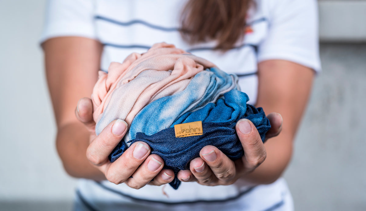 Till våra sjalar vävda med både ofärgat och färgat garn och våra munskydd har vi använt miljövänliga azofria färgämnen, som kräver mindre färg och dessutom mindre vattenanvändning jämfört med konventionella färgämnen.