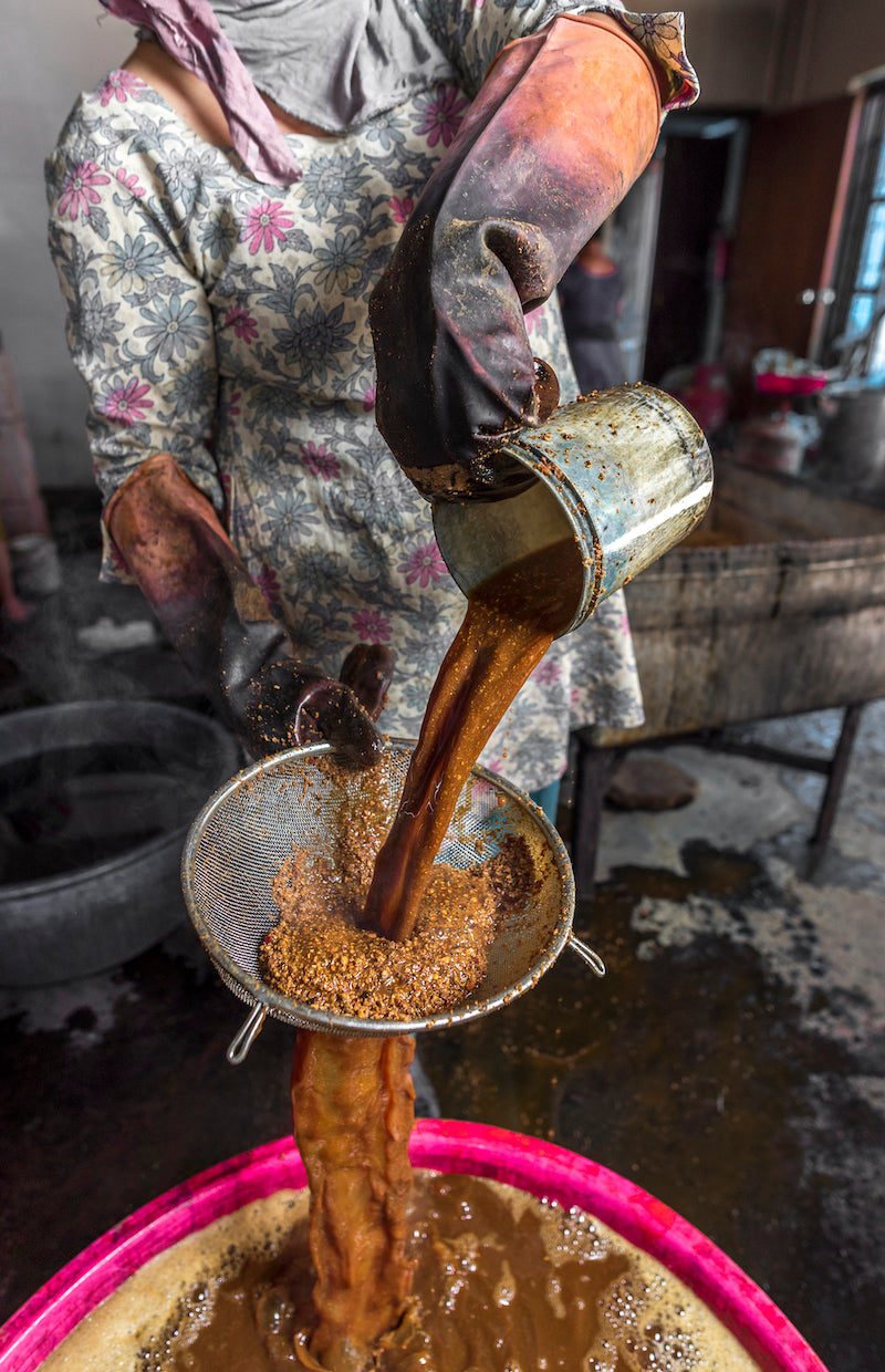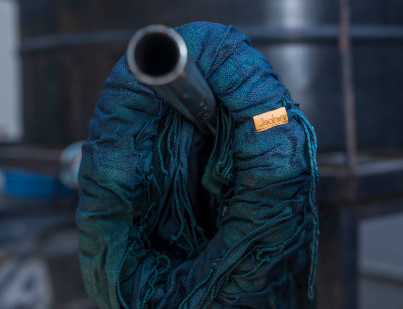För våra sjalar färgade med naturligt färgämne har vi använt säsongsbetonade växter och örter lokalt skördade i Nepal. Beroende på säsong är vissa nyanser inte alltid tillgängliga och endast ett fåtal sjalar kan gå in i varje färgsats, vilket kan resultera i små variationer i nyanser.